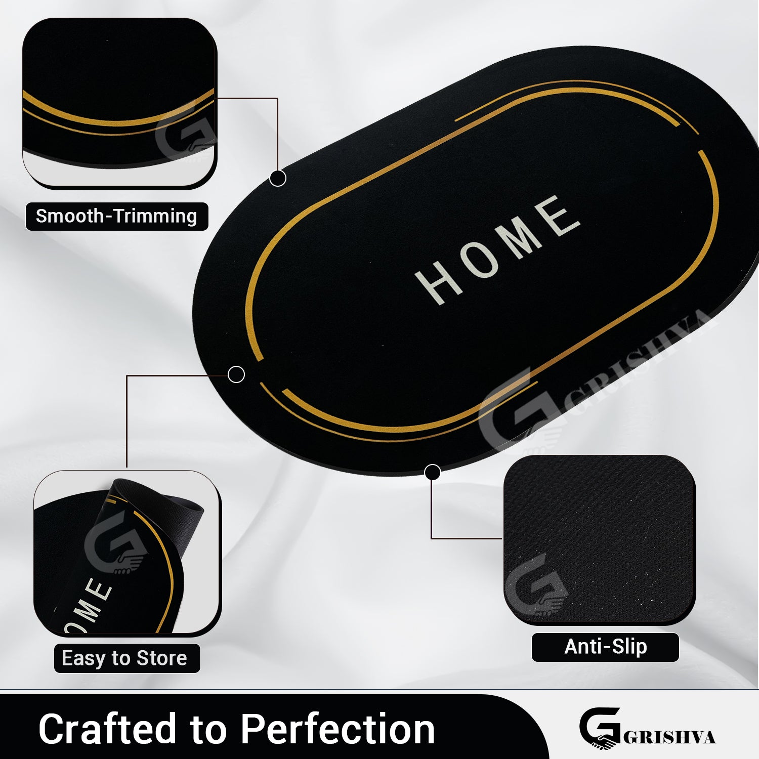 Premium 3.5mm Golden Black Anti-Skid Water Soaking Home Mat – Soft, Quick-Dry & Durable for Bathroom or Floor Use